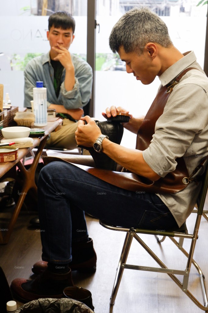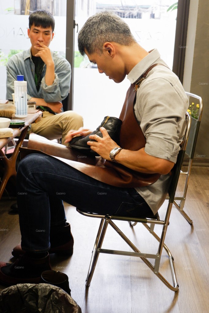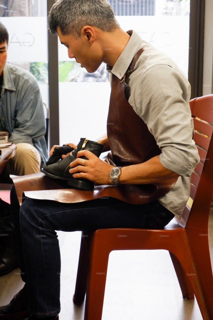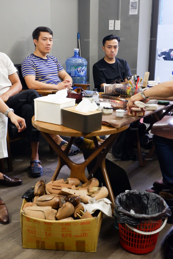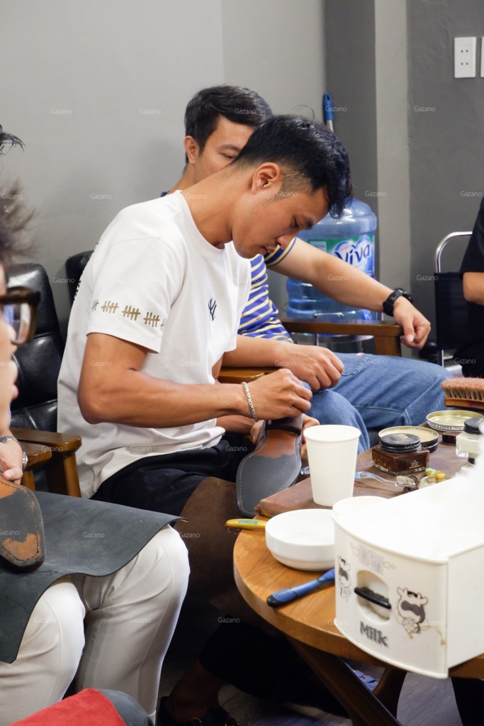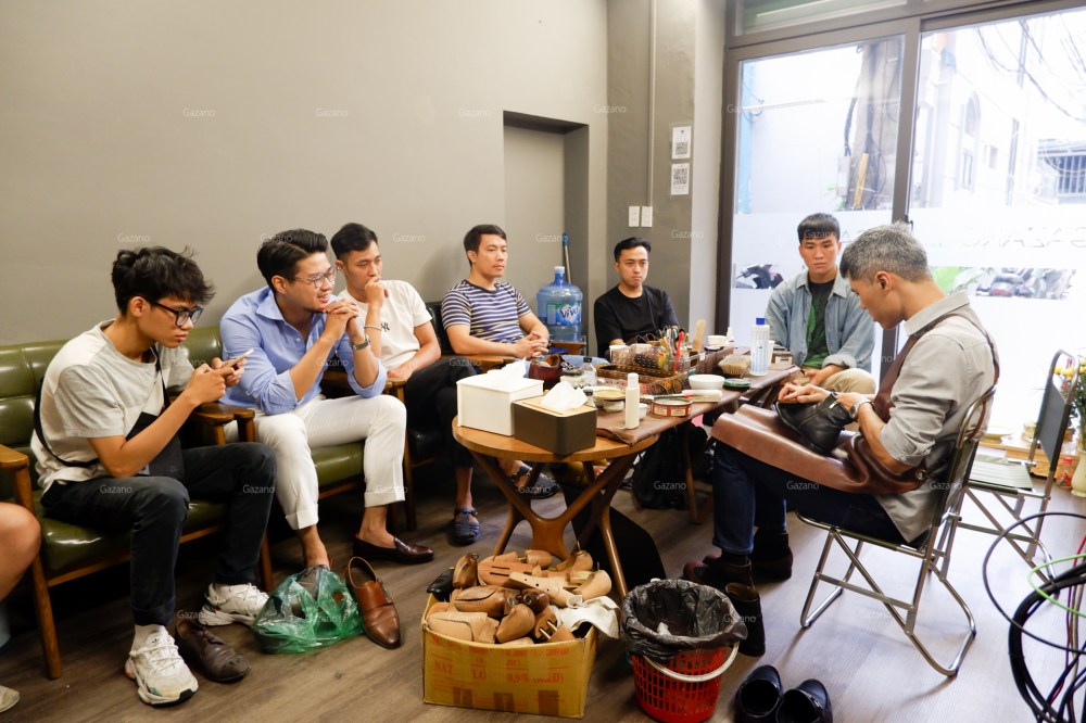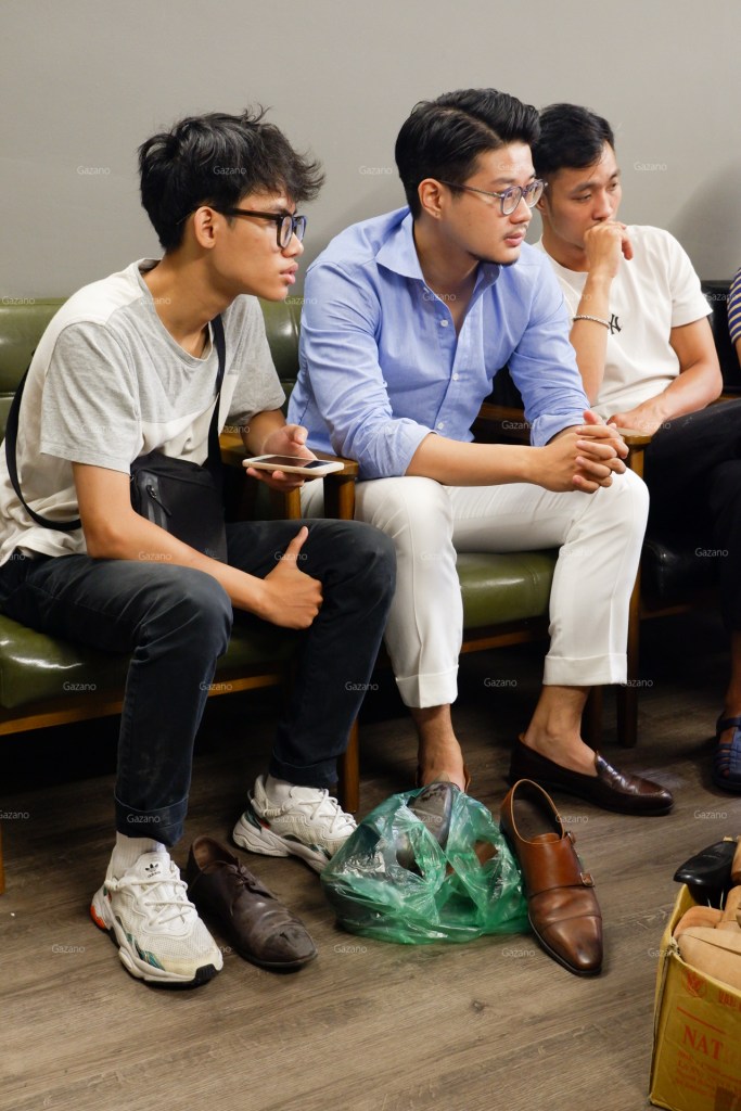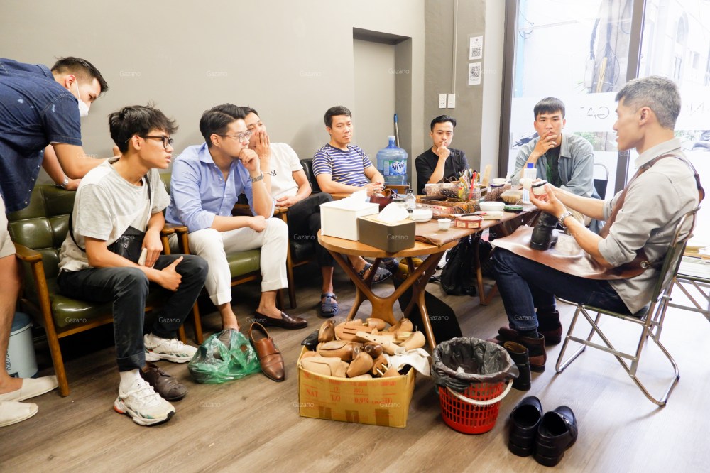Đại đa số thành phần buổi học là saller của các brand giày trong nước như L’amant Shoes maker hoặc Fugashin Shoesmaker tại Hà Nội, cũng như anh em thợ chăm sóc giày và túi có tiếng tại xứ Thanh cũng bắt chuyến xe sớm nhất để tham gia buổi học của Gazano.